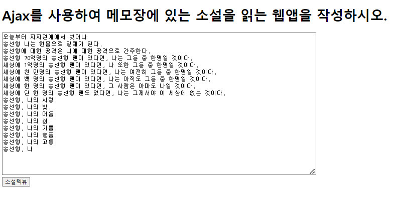 <h1>Ajax를 사용하여 메모장에 있는 소설을 읽는 웹앱을 작성하시오.</h1>